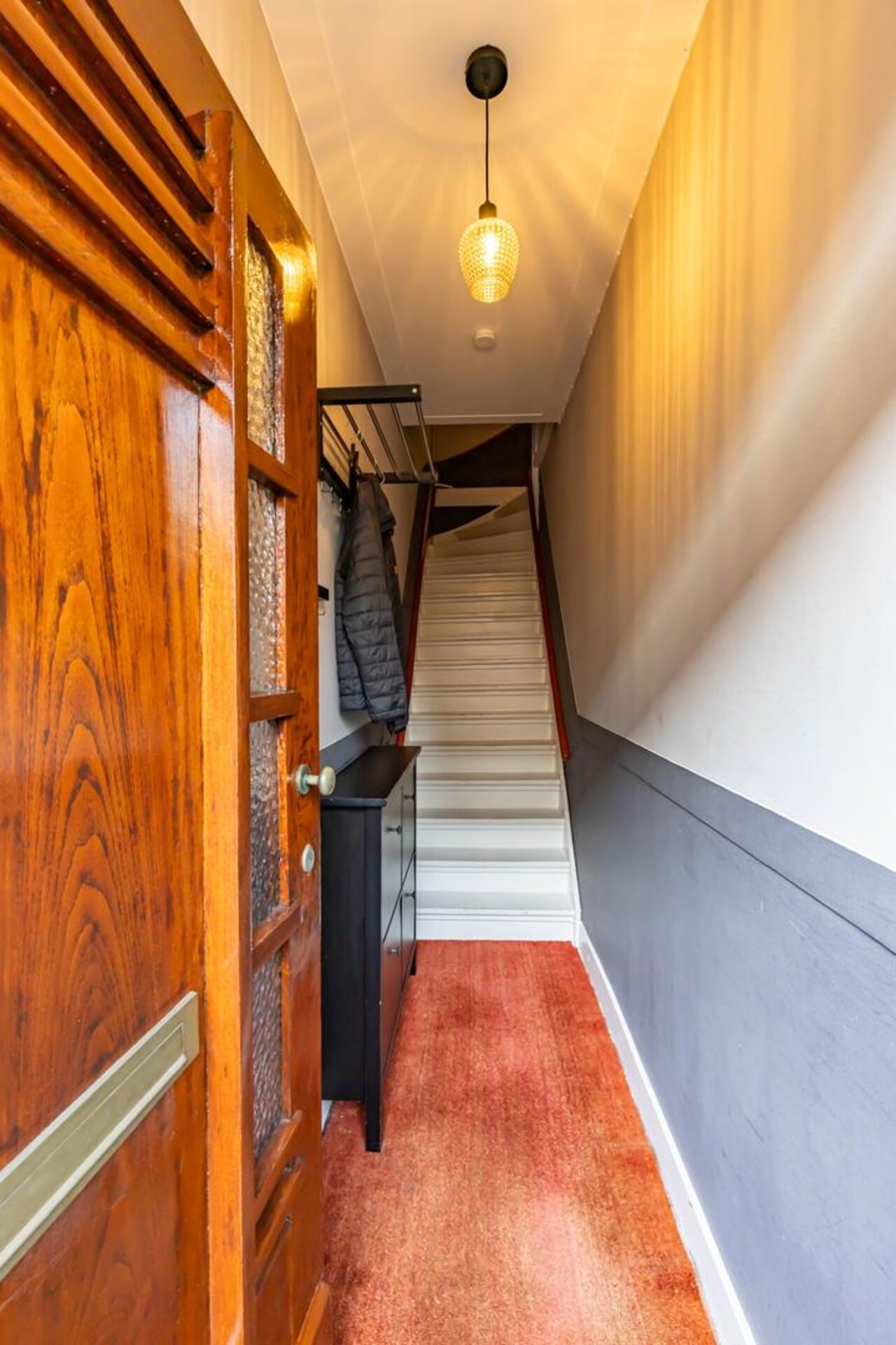 Entree/hal en trapopgang naar de eerste verdieping.