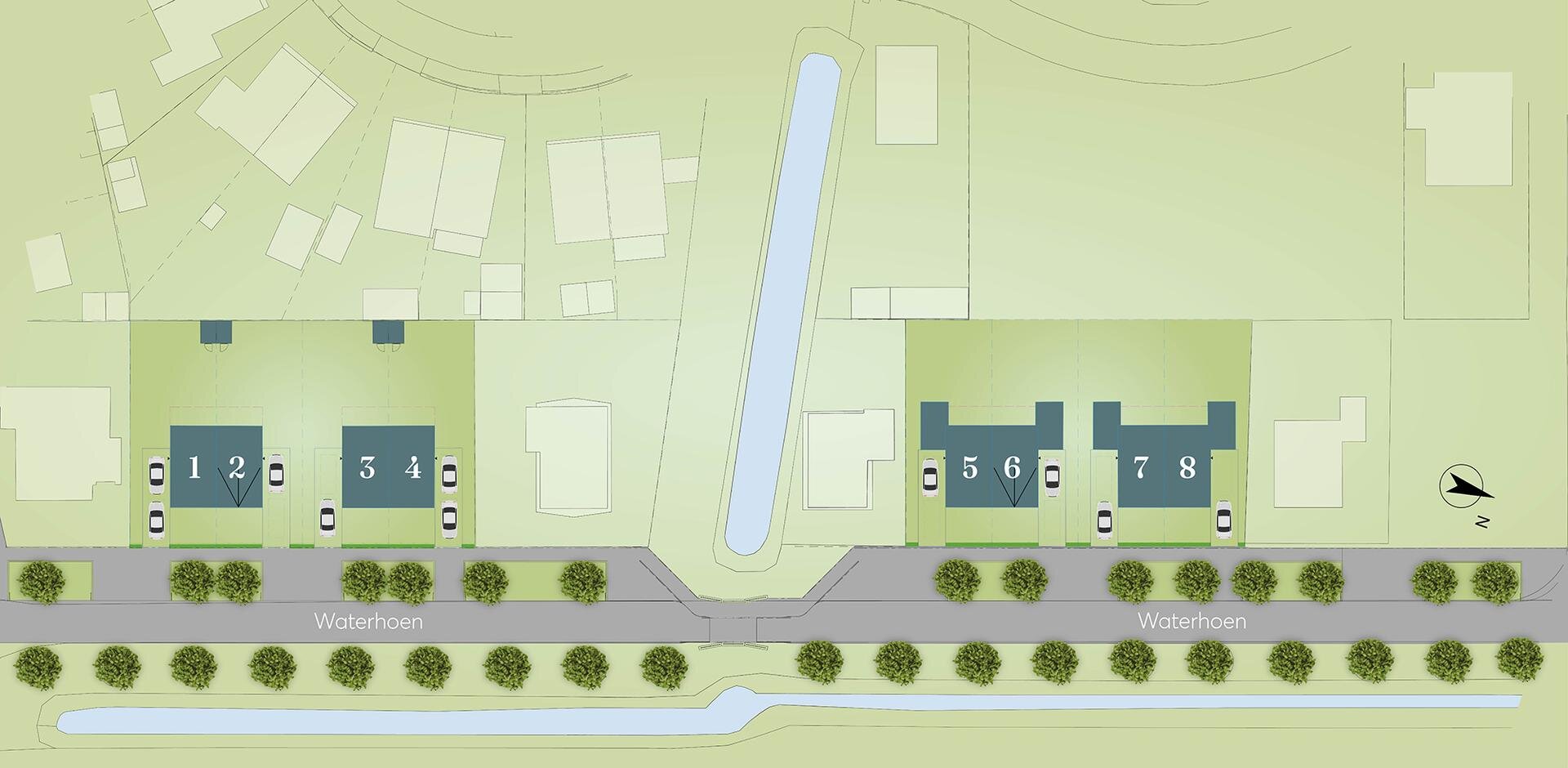 Aan de rustige Waterhoen in Bedum wordt het project Wonen in Ter Laan 4 uitgebreid met acht ruime twee-onder-één-kapwoningen. Hier aan de rand van Bedum woon je straks in een nieuwe wijk die praktisch af is. Alles klopt: de kavels zijn breed, aan de voorzijde heb je heerlijk vrij uitzicht, de buurt is autoluw en prachtig groen.